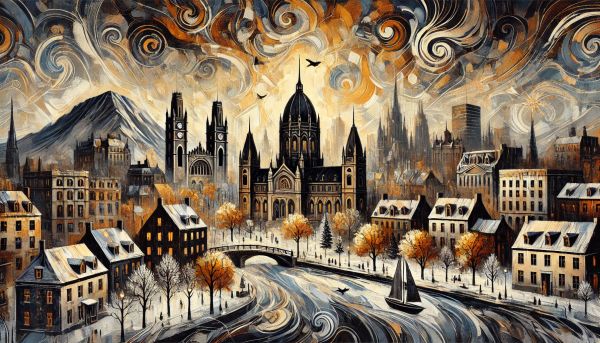 Title: Dreamlike Visions of Montreal: A Cubist and Van Gogh Inspired Tapestry Photo ID: 43274