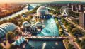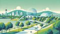 Vibrant Artistic Representation of Montreal's Parc Jean-Drapeau and Biosphere
