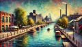 Impressionist Vision of Lachine Canal with Vibrant Evening Colors