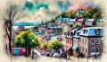 Watercolor Splendor of Plateau Mont-Royal, A Vivid Urban Tapestry