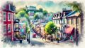 Enchanting Watercolor Interpretation of Plateau Mont-Royal's Streetscape