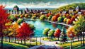 "Colorful Autumn Whisper: Artistic Depiction of Plateau Mont-Royal"