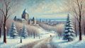 Enigmatic Fusion of Cubism and Impressionism in a Wintry Landscape