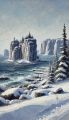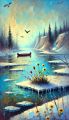 Whimsical Winter at Lake Saint-Jean: A Cubist-Inspired Landscape
