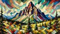 Captivating Cubist Interpretation of Mont D'Iberville in Bold Brush Strokes