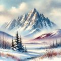 Majestic Peaks of Mont D'Iberville Painted in Dreamy Watercolors