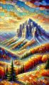 Dreamy Cubist Interpretation of Mont Jacques-Rousseau in Autumn Colors