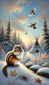 Enchanting Winter Scene: Eastern Chipmunk Amidst Snowy Quebec Landscape