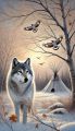 Enigmatic Gray Wolf Amidst Snowy Quebec Wilderness with Autumn Leaves