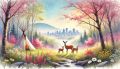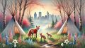 Early Spring in Quebec: A Dreamlike Deer Family Amidst Thawing Snow