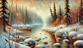 Winter Serenity on Batiscan River: A Cubist-Inspired Landscape