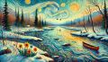 Van Gogh-inspired Vision of Batiscan River's Winter Wonderland