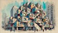 A Cubist-Inspired Vision of Habitat 67 Blending Art Deco and Futurism
