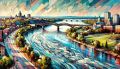 Vibrant Fusion of Cubism and Futurism in Richelieu River Artwork