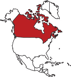 The location of Canada, north of the United States, in North America
