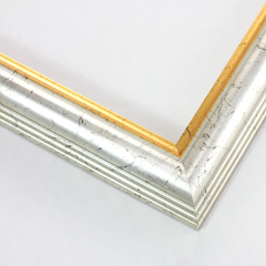 This aged-classic frame features a silver outer profile with gold lip. Topped with splashes of black thin scrambled lines along the surface.